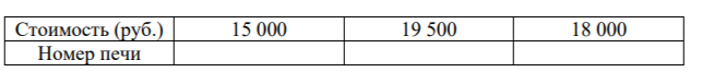 Задание 1. Установите соответствие между стоимостями и номерами печей. Заполните таблицу, в бланк ответов перенесите последовательность трёх цифр без пробелов, запятых и других дополнительных символов.