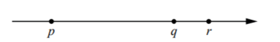 Какая из разностей q-p , q-r , r-p − отрицательна?