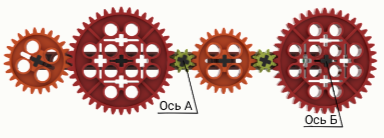 Задание 3. Из шестерёнок с 8 , 18 и 24 зубьями собрали передачу. Ось А является ведущей, ось Б ведомой. Определите передаточное отношение данной передачи.