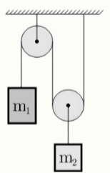 Задание 4. Из двух блоков подвижного и неподвижного собрали механизм, с помощью которого уравновесили два груза. Масса груза m1 равна 600 граммам. Определите массу груза m2. Ответ выразите в граммах.