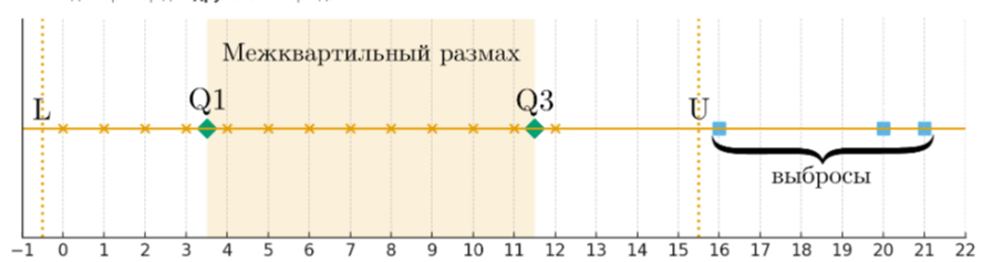 Число считается выбросом, если оно меньше либо равно L или больше или равно U.