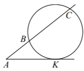 16. Через точку A, лежащую вне окружности, проведены две прямые. Одна прямая касается окружности в точке K . Другая прямая пересекает окружность в точках B и C, причём AB=6 , AC=24. Найдите AK .
