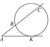 16. Через точку A, лежащую вне окружности, проведены две прямые. Одна прямая касается окружности в точке K . Другая прямая пересекает окружность в точках B и C, причём AB=3, AC=12 . Найдите AK .