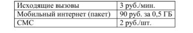 5. В конце 2024 года оператор связи предложил абоненту перейти на новый тариф, условия которого приведены в таблице.
