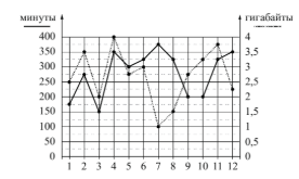 1. Пользуясь рисунком, поставьте в соответствие каждому из указанных периодов времени характеристику израсходованных минут и гигабайтов.