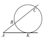16. Через точку A , лежащую вне окружности, проведены две прямые. Одна прямая касается окружности в точке K . Другая прямая пересекает окружность в точках B и C , причём AB = 2 , AC = 8 . Найдите AK .