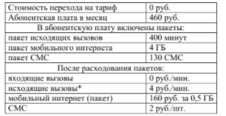 Стоимость минут, интернета и СМС сверх пакета тарифа указана в таблице.