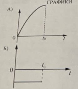 Установите соответствие между графиками и физическими величинами, зависимость которых от времени эти графики могут представлять. График в п. А является фрагментом параболы.