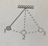 Задание 5. Небольшой шарик математического маятника отклонили на малый угол от положения равновесия в положение 1 и отпустили из состояния покоя (см. рисунок). Частота колебаний маятника равна 0,5 Гц. Потенциальная энергия шарика отсчитывается от положения равновесия. Сопротивлением воздуха пренебречь. Из приведённого ниже списка выберите все верные утверждения о гармонических колебаниях маятника.