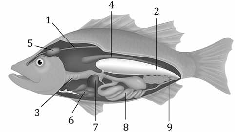Задание 9. Каким номером на рисунке обозначена почка рыбы?