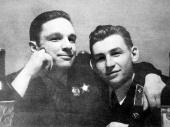 Задание 15. На этом снимке 1940 г. запечатлены дядя и племянник. Один — уже известный к тому времени художник, награждённый орденами за участие в арктических экспедициях (на ледокольных пароходах «А. Сибиряков» и «Челюскин»). Другой — лётчик бомбардировочной авиации, который в ходе Великой Отечественной войны станет Героем Советского Союза, а в дальнейшем дорастёт до крупного военачальника (в его послужном списке — должности командующего Дальней авиацией, заместителя Главнокомандующего ВВС СССР).