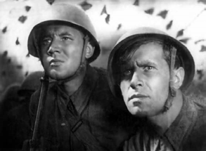 Задание 21. Популярный кинообраз солдата-уральца Саши Свинцова (прозвище «Саша с Уралмаша» стало крылатым выражением) создан актёром Борисом Андреевым в фильме «Два бойца» (в кадре из фильма — слева), который был снят во время войны и сюжет которого связан с обороной Ленинграда.