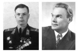 Задание 25. Этот лётчик-штурмовик (на фото слева), совершивший в период Великой Отечественной войны 187 боевых вылетов, стал единственным из уроженцев Казани, дважды удостоенным звания Героя Советского Союза. Его однофамилец (на фото справа), со дня рождения которого в 2026 г. исполняется 115 лет, — популярный актёр, создавший образ русского богатыря Никиты Кожемяки в фильме-сказке, снятом во время войны.