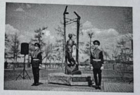 В августе 1942 г. 16-летний разведчик был задержан и расстрелян гитлеровцами, но выжил, а через 22 года совершил в качестве научного сотрудника свой полёт на орбиту в составе первого в мире экипажа из трёх человек (в центре снимка — командир корабля В.М. Комаров, крайний справа — врач Б.Б. Егоров).