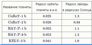 Даны значения радиусов орбит некоторых планет и радиусов звёзд, вокруг которых эти планеты движутся.