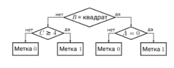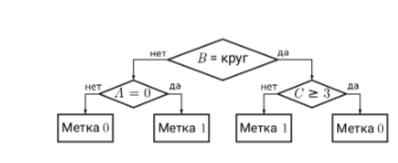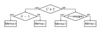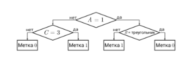Задание 4. Даны четыре простых правила в виде «деревьев вопросов», которые в зависимости от различных признаков определяют для объекта метку 0 или 1.