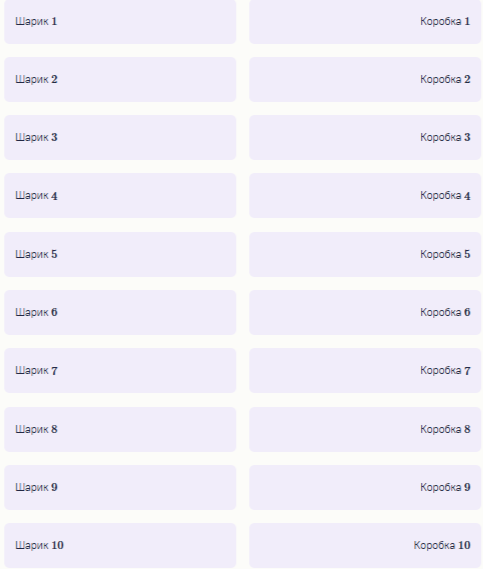 Задание 1. Перекладывание шариков. Автоматизация пришла на завод по перекладыванию шариков, и теперь эту важную работу выполняют роботы. Всего на заводе есть 10 коробок, пронумерованных числами от 1 до 10, и по этим коробкам всегда разложены шарики: по одному в каждой коробке.