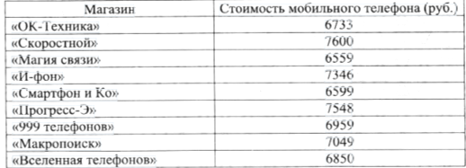 Задание 3. В таблице представлены данные о стоимости некоторой модели мобильного телефона в магазинах.