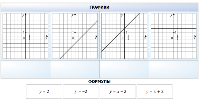 Задание 5. Установите соответствие между графиками функций и формулами, которые задают эти функции.