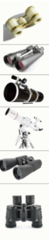 2. Даны фотографии четырёх типов биноклей и двух типов телескопов астронома‑любителя. Установите соответствие между изображениями и названиями оптических инструментов.