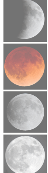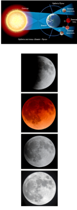 3. Даны фотографии четырёх различных типов лунных затмений во время их максимальной фазы. Установите соответствие между названиями и изображениями типов лунных затмений.