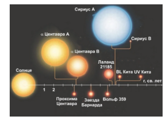 7. Дана диаграмма распределения 10 ближайших звёзд в окрестности Солнца.