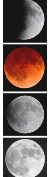 3. Даны фотографии четырёх различных типов лунных затмений во время их максимальной фазы. Установите соответствие между названиями и изображениями типов лунных затмений.