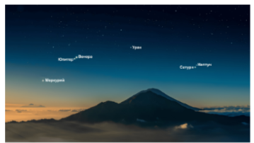 В какое время суток можно было наблюдать данную конфигурацию планет?