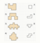 5. Каждую из закрашенных фигур разделили по сторонам клеточек на 4 равные части (одинаковые по форме и размеру). Выберите для каждой большой фигуры форму её части. Фигуры и части можно поворачивать и переворачивать.