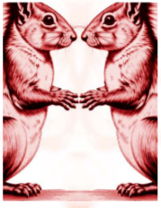 Задание 6. Этот рисунок иногда называют обманом зрения. Художник нарисовал только двух зверьков. Но между ними можно разглядеть то, что не было нарисовано. Что можно увидеть между зверьками?