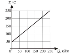 Задание 8. На рисунке приведён график зависимости температуры Т твёрдого тела массой 2,5 кг от полученного им количества теплоты Q. Перед началом нагревания тело находилось в твёрдом состоянии.