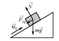 Задание 5. В инерциальной системе отсчёта брусок, которому сообщили начальную скорость v0 , скользит вверх по наклонной плоскости с шероховатой поверхностью (см. рисунок).
