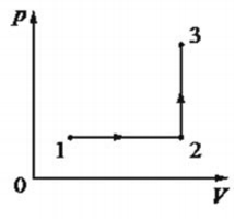 Задание 10. 1 моль одноатомного идеального газа участвует в процессе 1–2–3, график которого изображён на рисунке в координатах p–V, где p – давление газа, V – объём газа. Как изменяются концентрация молекул n газа в ходе процесса 1–2 и абсолютная температура Т газа в ходе процесса 2–3? Масса газа остаётся постоянной.