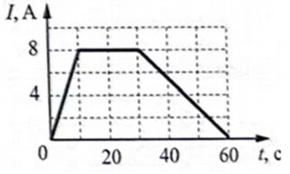 Задание 11. На графике показана зависимость силы тока I в проводнике от времени t. Определите заряд, прошедший через поперечное сечение l проводника за промежуток времени от 0 до 10 с.