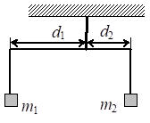 Задание 4. Коромысло весов, к которому подвешены на нитях два груза (см. рисунок), находится в равновесии. Массу первого груза увеличили в 2 раза. Во сколько раз нужно уменьшить плечо d1, чтобы равновесие сохранилось? (Коромысло и нити считать невесомыми.)