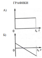 Графики А и Б отображают зависимость физических величин, характеризующих движение мячика в процессе полёта, от времени t (t0 — время полёта). Установите соответствие между графиками и физическими величинами, зависимость которых от времени эти графики могут представлять.