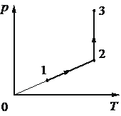 Задание 10. Один моль одноатомного идеального газа участвует в процессе 1–2–3, график которого изображён на рисунке в координатах p–T, где p – давление газа, T – абсолютная температура газа. Как изменяются объём газа V в ходе процесса 1–2 и плотность газа ρ в ходе процесса 2–3?