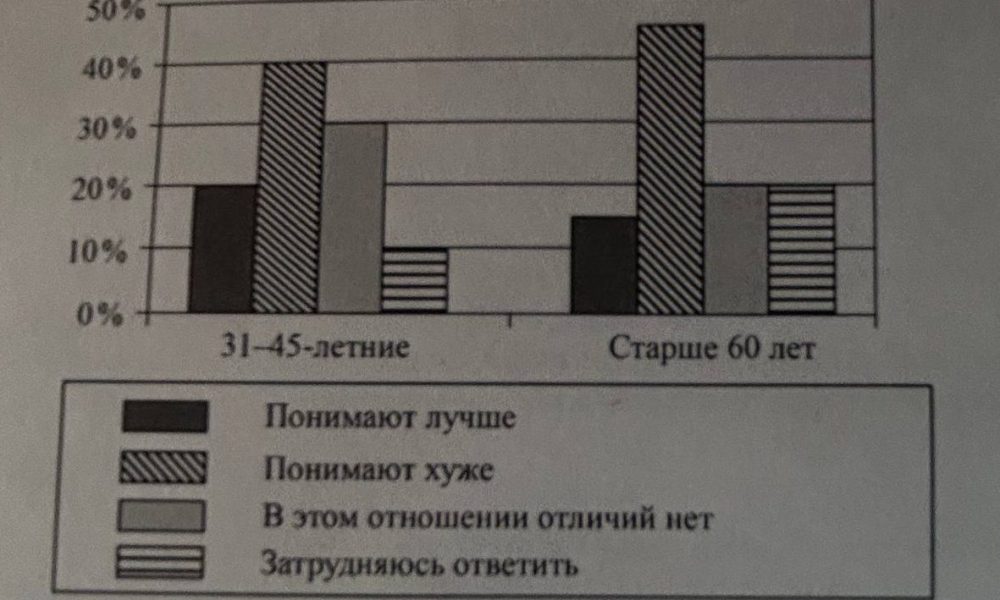 Среди опрошенных 31–45-летних доля тех, кто считает, что в этом отношении отличий нет, больше доли тех, кто считает, что понимают лучше.