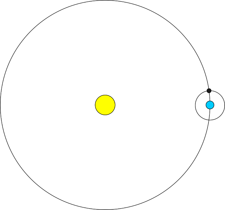 Луна на рисунке вращается вокруг Земли против часовой стрелки.