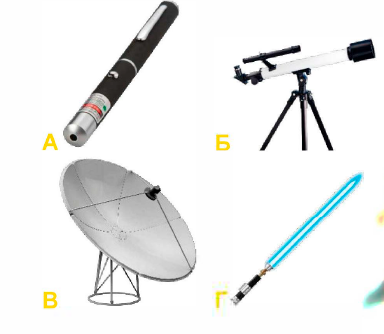 5. В романе Алексея Николаевича Толстого «Гиперболоид инженера Гарина» в 1927 году предсказано создание прибора, разрушающего удалённые предметы с помощью мощного энергетического луча. На какой картинке показан современный маломощный аналог такого прибора?