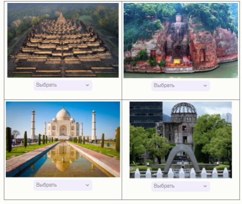 Задание 10. Соотнесите фотографии объектов культурного наследия ЮНЕСКО и государства, в которых они находятся.