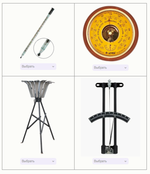 Задание 10. Установите соответствия между метеорологическими приборами и единицами измерения, в которых они измеряют метеорологические показатели.