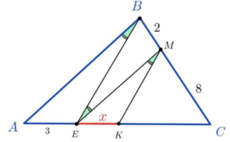 Задание 6. Найдите длину отрезка EK в треугольнике на рисунке.