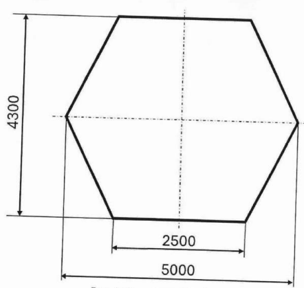 Матвеевы выбрали краску и оказалось, что её средний расход составляет 11 м2/л. Им необходимо посчитать, сколько литровых банок краски необходимо купить, если они хотят покрасить пол и стены беседки. Пол представляет собой шестиугольник, стороны которого равны. Схема пола изображена на рисунке 1 справа. Стены будут прямоугольными, высотой 2,5 метра. Всего будет 5 стен. Ширина стен будет равна размеру стороны шестиугольника, являющегося полом беседки.