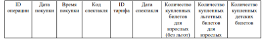 Таблица «Продажа билетов» содержит записи о количестве проданных различным категориям посетителей билетов на спектакли. Заголовок таблицы имеет следующий вид.