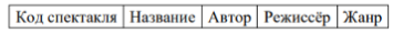 Таблица «Спектакли» содержит информацию о репертуаре театра. Заголовок таблицы имеет следующий вид.