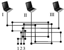 Задание 3. Есть три ноутбука, каждый из которых подключён к интернету через свой разъём. К какому разъёму подключён ноутбук II?