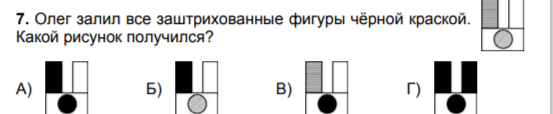 Задание 7. Олег залил все заштрихованные фигуры чёрной краской. Какой рисунок получился?