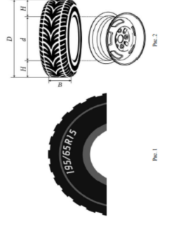 Для маркировки автомобильных шин применяется единая система обозначений. Например, 195/65 R15 (рис.1). Первое число (число 195 в приведенном примере) обозначает ширину шины в миллиметрах (параметр В на рисунке 2). Второе число (число 65 в приведенном примере) – процентное отношение высоты боковины (параметр Н на рисунке 2) к ширине шины, то есть 100*Н/В
