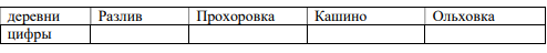 Задание 1. Пользуясь описанием, определите, какими цифрами на плане обозначены деревни. Заполните таблицу, в бланк ответов перенесите последовательность из четырех цифр без пробелов, запятых и других дополнительных символов.